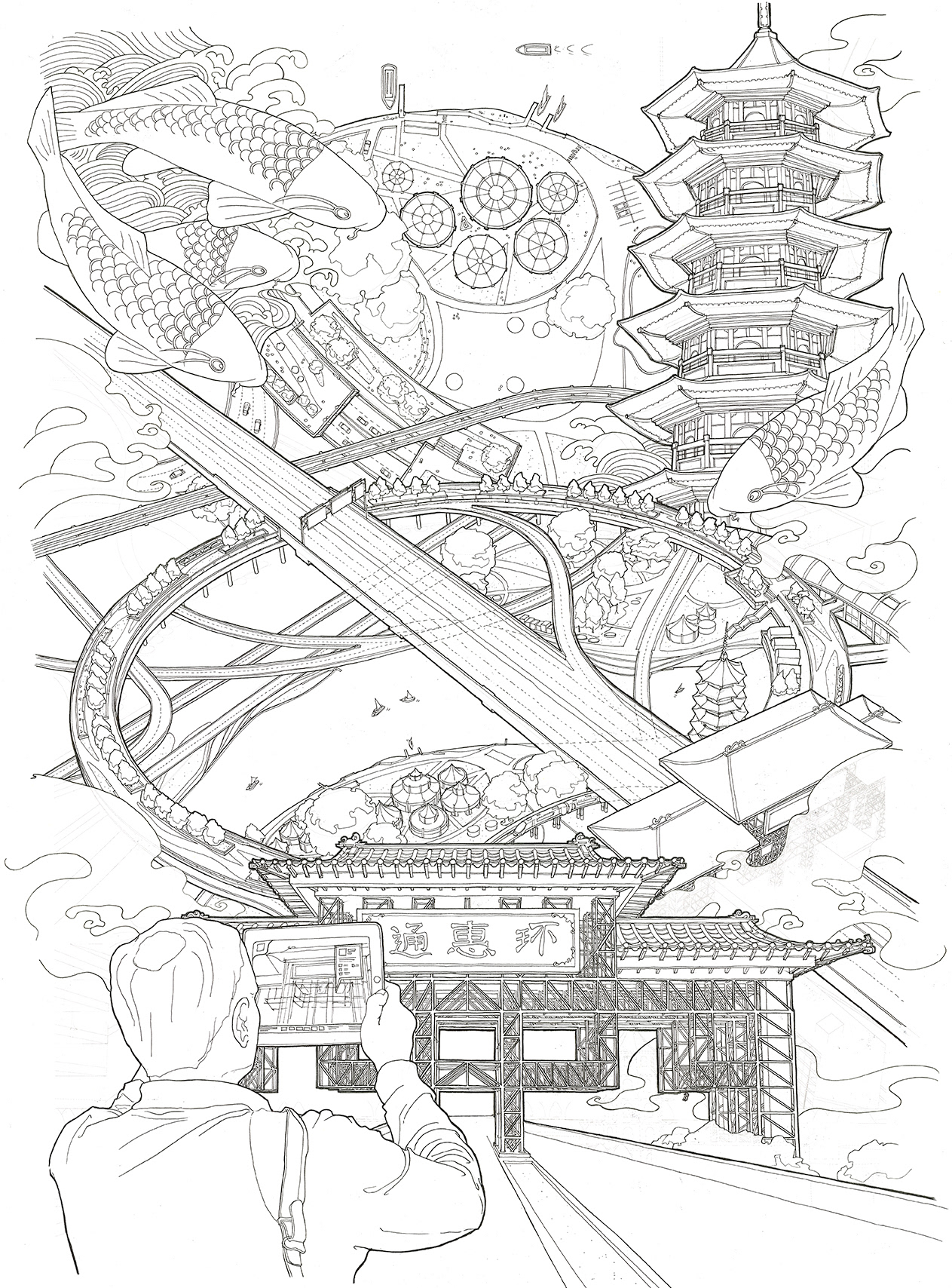 Original hand-drawn linework for poster drawings collaboration with: John Wan